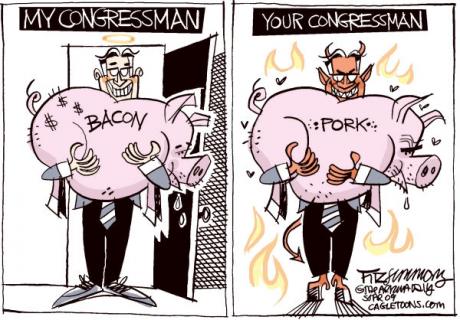 A lot of that is hype. As above, one congressman's pork is another's bacon. McCain can denounce the mating habits of a wasp being studied, but not mention that the wasp will damage a multi-billion dollar grape harvest. One can attack funding for New Orleans, while the hands come out for MY district. The Pauls denounce even Lincoln's positions during the Civil War. Liberty!!! Yet, I haven't heard them vocalize their feelings about uncompensated labor on behalf of the Africans.